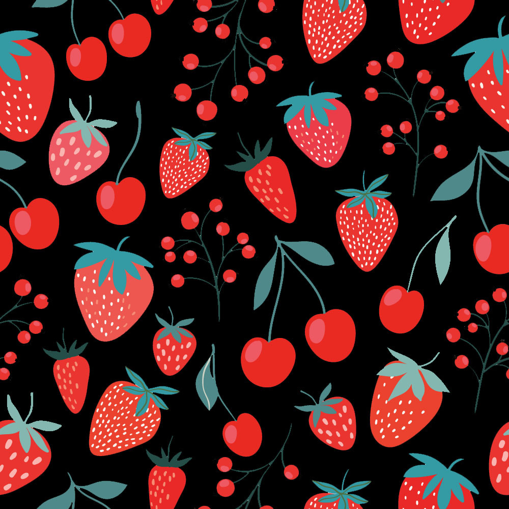 Jordgubbar och Körsbär svart